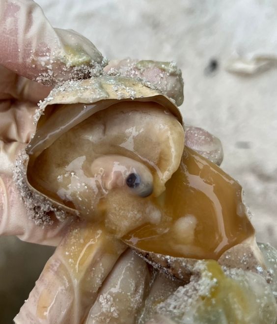 During excavations, unhatched eggs often contain embryos that stopped developing halfway through. Scientists classify these embryos into stages based on size, coloration, and yolk absorption. A Stage 2 embryo measures around 1-3 cm and starts to show body pigmentation. The limbs are forming, and the ribs start growing outward to create what will become the sea turtle’s characteristic shell. Studying embryos like these helps researchers trace when and why development stopped, identifying causes for disruption such as – temperature spikes, flooding, or egg movement.