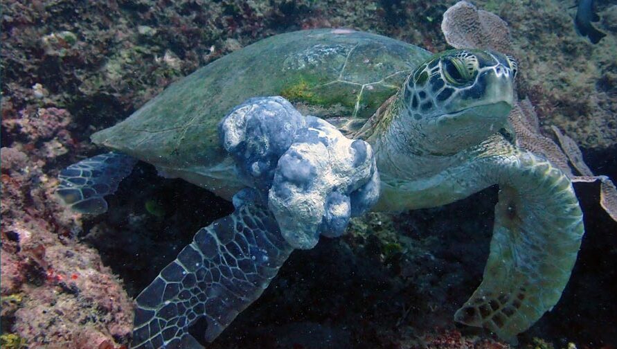 The combined effect of both external and internal tumour growth can compromise a sea turtle’s ability to survive in the wild.