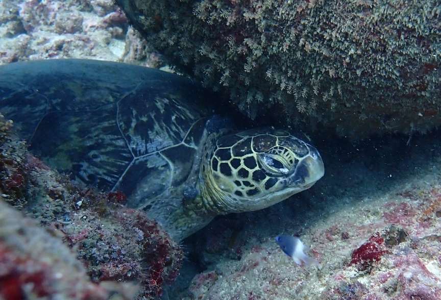 Over the years, we watched Purcell grow into a calm and almost friendly sea turtle, reaching an impressive 80 cm as per our most recent sighting. But along with her growth came a challenge none of us were prepared for.